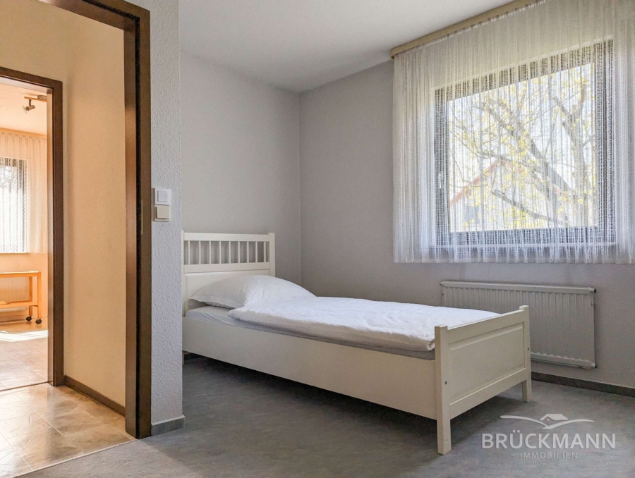 Für die Zukunft ist das Haus ebenfalls gut aufgestellt: Wohnen auf einer Ebene macht es ideal für einen altersgerechten Umbau. Zusätzlich besteht die Möglichkeit, im Untergeschoss eine Einliegerwohnung zu realisieren. Diese könnte als separate Wohneinheit genutzt werden, ideal für die Unterbringung einer Pflegekraft oder zur Erzielung von Mieteinnahmen, die zur Finanzierung des Hauses beitragen könnten.