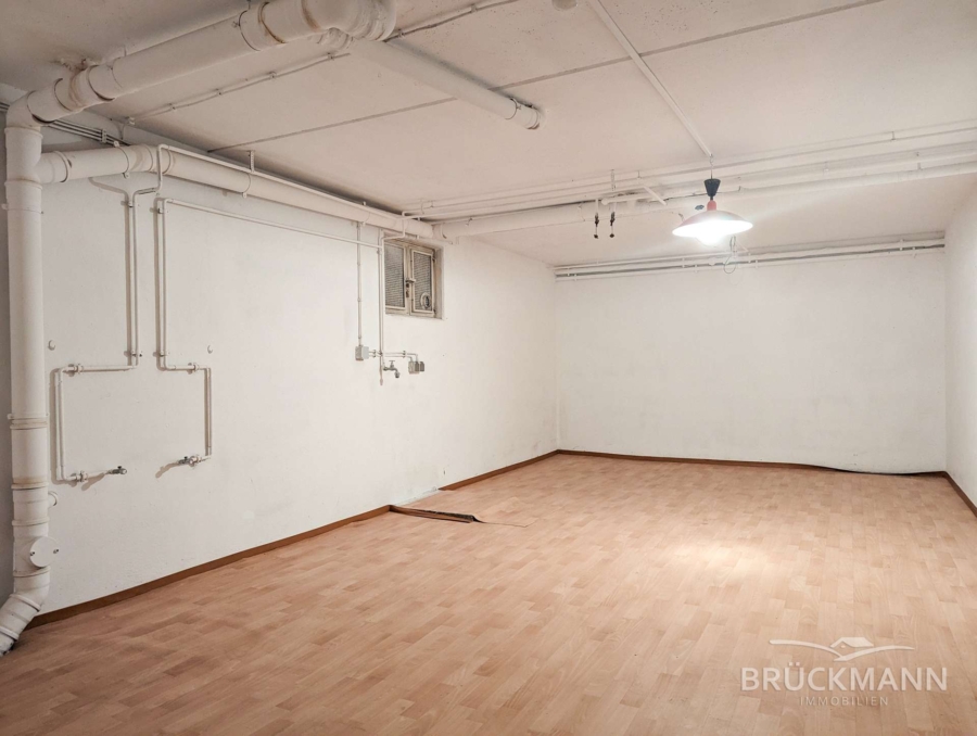 Das Kellergeschoss in Massivbauweise bietet Ihnen zusätzlichen Stauraum auf weiteren ca. 82 m² Nutzfläche und ausreichend Platz in vier Kellerräumen, einer geräumigen Garage mit Regalen und einem Heizraum mit (theoretisch) gut nutzbarem Platz für ein Pelletslager (falls der Einbau einer späteren Pelletsheizung gewünscht wäre)