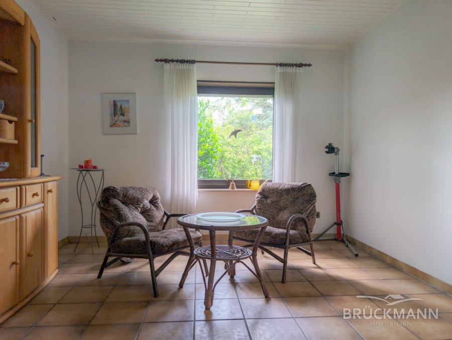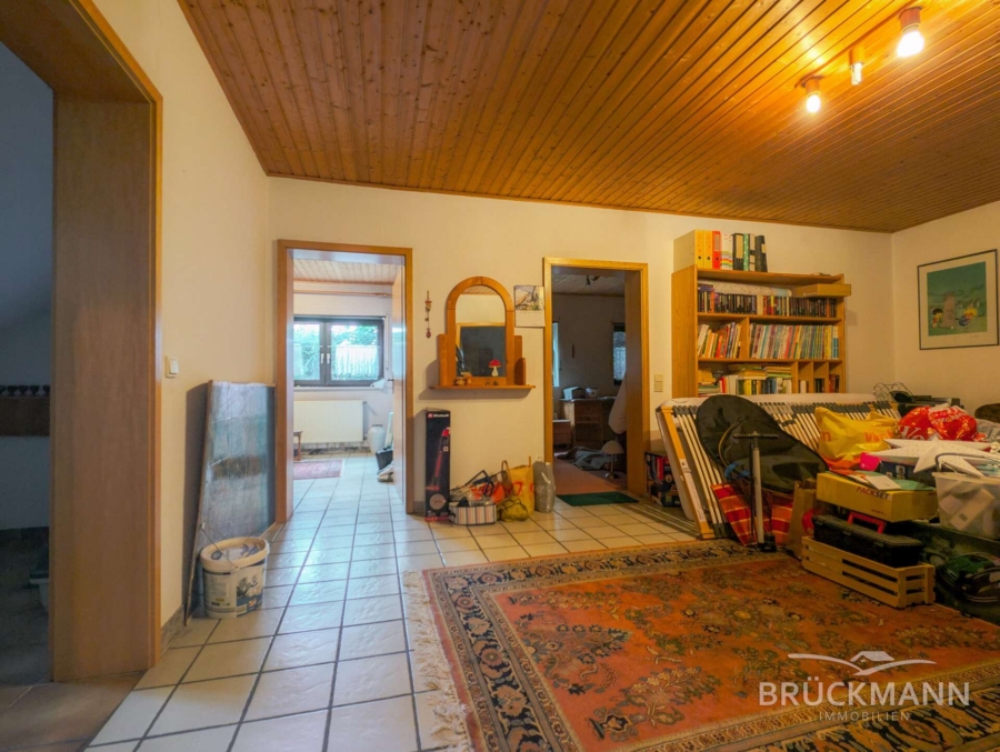 Das Untergeschoss bietet neben klassischer Nutzfläche (zwei große Hobbyräume und ein weiterer Kellerraum sowie Heizungsraum) auch rund 49 m² wohnlich nutzbaren Raum: Zwei weitere Schlafzimmer mit 22 m² und 12 m² sowie ein Duschbad machen diese Ebene mit einer Raumhöhe von mehr als 2,40 m vielseitig! Ob als Arbeitsbereich, Rückzugsort für Jugendliche oder Gästebereich – die Nutzung bleibt flexibel. Wichtig zu wissen: Das Untergeschoss ist zum Außenbereich nicht abgedichtet und zeigt vereinzelt Spuren von Feuchtigkeit – das ist technisch lösbar, aber bitte einzukalkulieren.
