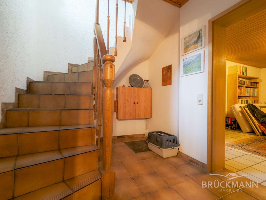 Das Haus liegt in einem gewachsenen Wohngebiet mit kurzer Anbindung ans Zentrum – nur wenige Gehminuten zum Bahnhof, zu Schule, Kindergarten und allen Einrichtungen des täglichen Bedarfs. Für Familien ein klarer Vorteil: Der Alltag lässt sich unkompliziert zu Fuß oder per Fahrrad organisieren.
