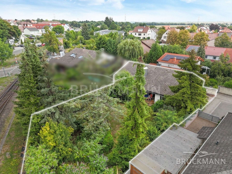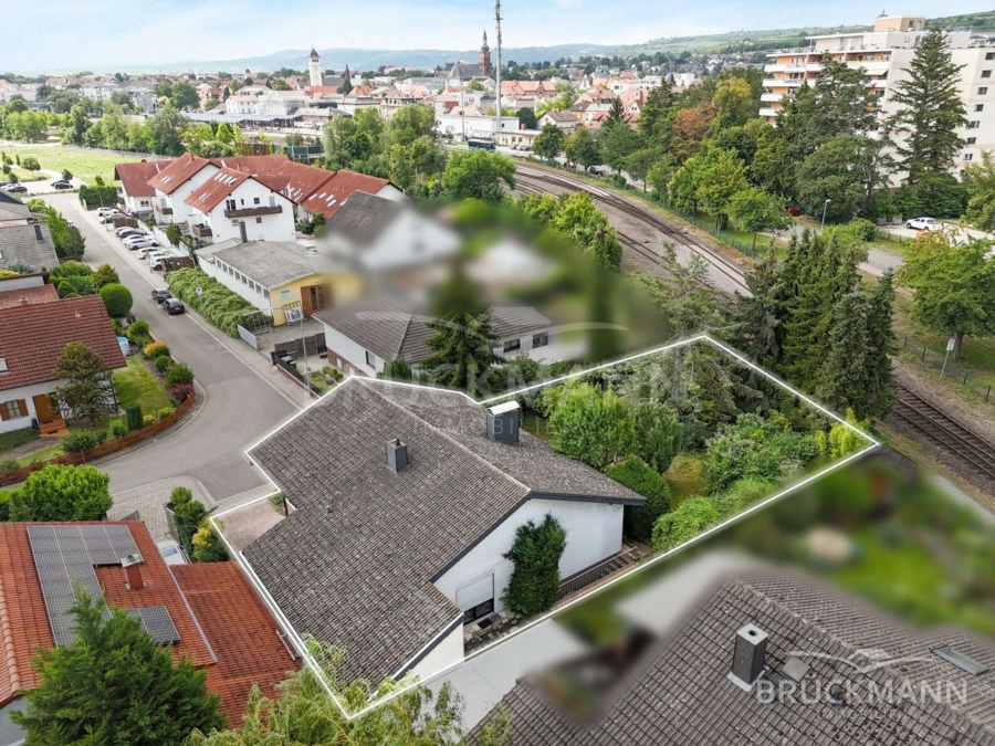Wohlgemerkt: Das Grundstück grenzt unmittelbar an die Bahngleise der Regionalbahnstrecke Neustadt – Monsheim bzw. Grünstadt – Eisenberg. Der Zugverkehr ist hörbar, aber auch nicht extrem. Wer zentral wohnen möchte und den Garten zu schätzen weiß, trifft hier auf einen Kompromiss, der sich lohnen kann – vor allem angesichts der Grundstücksgröße und des Gesamtraumpotenzials!