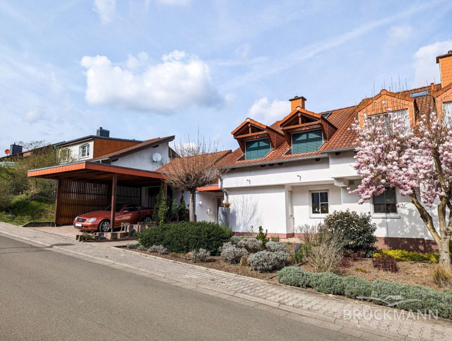 Die 1992 in Massivbauweise errichtete Doppelhaushälfte fällt beim Anfahren bereits positiv auf durch den ersten Eindruck des gepflegten Vorgartens und des großen Carports. Unmittelbar dahinter befindet sich eine moderne Garage, die über einen direkten Zugang ins Wohnhaus verfügt. Und das Wohngebäude selbst besticht durch seine hochwertige Innenausstattung und seine Split-Level-Architektur und die daraus bedingt angenehm flachen Treppenabschnitte...