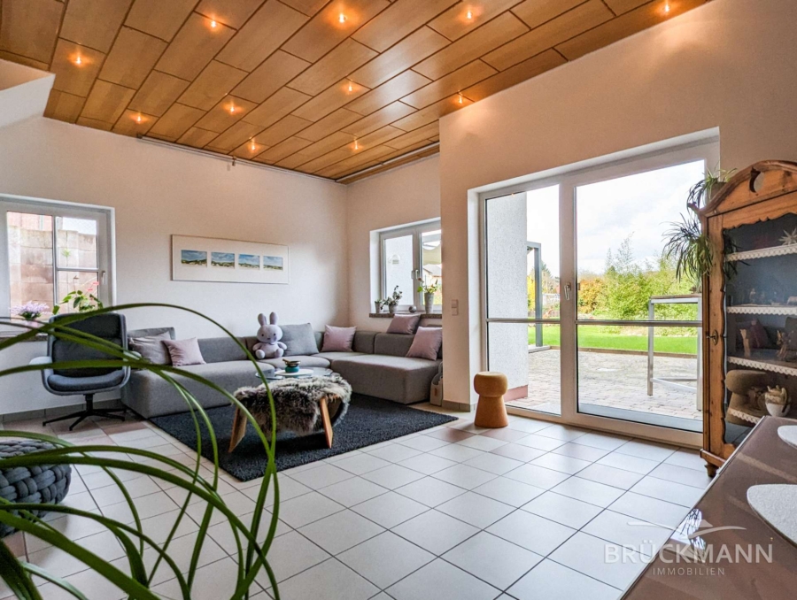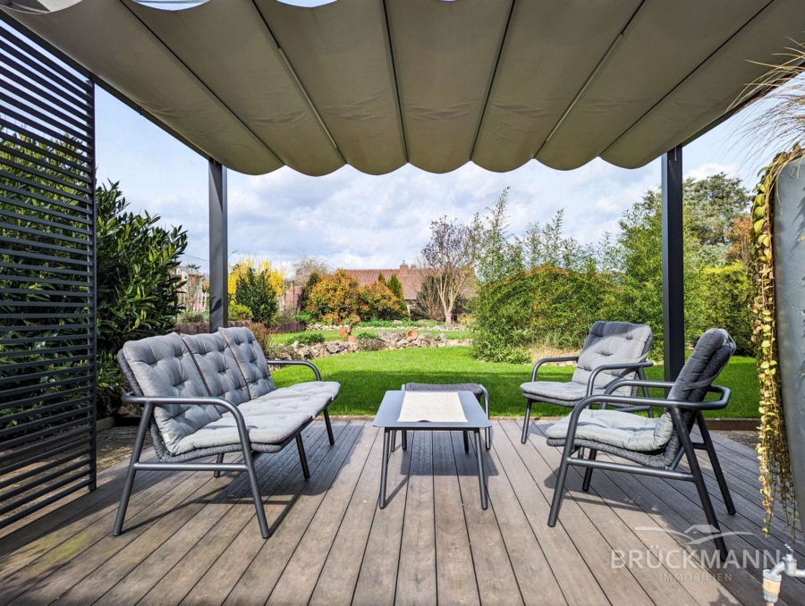 Das gesamte Erdgeschoss mit 63 m² Wohnfläche scheint von Wohnzimmer über Essbereich hin zu Küche ohne raumhohe Wände nahtlos überzugehen und bietet somit einen hellen und gemütlichen (Lebens)Raum, in dem Ihre Familie und Ihre Gäste sehr gerne verweilen werden... Über mehrere Wege, z. B. durchs Wohnzimmer, gelangen Sie in den sehr schön angelegten Garten mit moderner und überdachter Pergola, einem Teich und einem Gartenhaus.