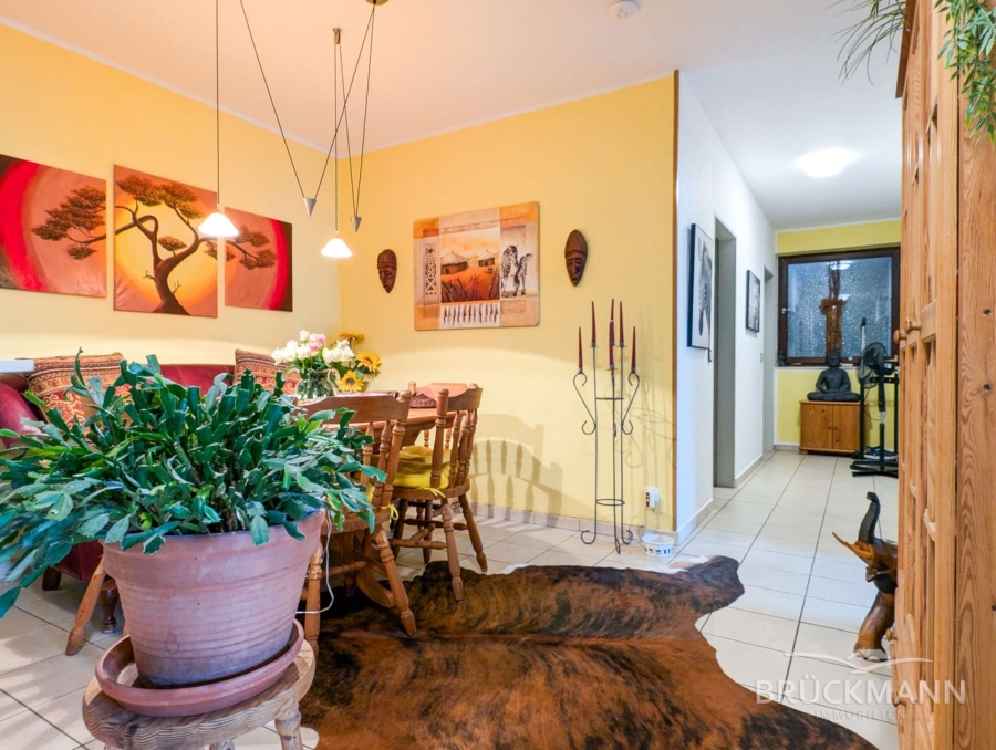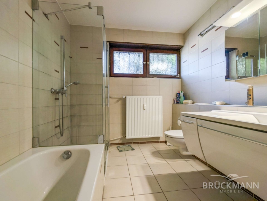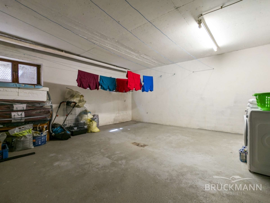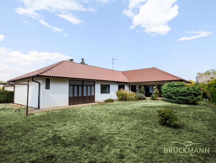 Der L-förmigen Bungalow in Massivbauweise (Bj. 1971) besteht im Erdgeschoss aus einer 5-ZKB mit Garten und Doppelgarage und verfügt im Untergeschoss über sowohl Gemeinschaftsräume als auch eine weitere 3-ZKB Einliegerwohnung. Dies bietet vielerlei Möglichkeiten: Entweder nutzen Sie die Mieteinnahmen der Einliegerwohnung zur Unterstützung Ihres Kredits (unbefristet vermietet – sehr gerne gesehen bei Banken), oder Sie belassen die separate Mieteinheit und vermieten Sie an Eltern/Schwiegereltern/die ältesten Kinder oder Sie nutzen als große Familie das gesamte Haus mit 6 Schlafzimmern und zwei Bädern einfach selbst... Aber auch für Selbstständige oder HomeOffice bietet die Einliegerwohnung das Potenzial als Büro oder Praxis!