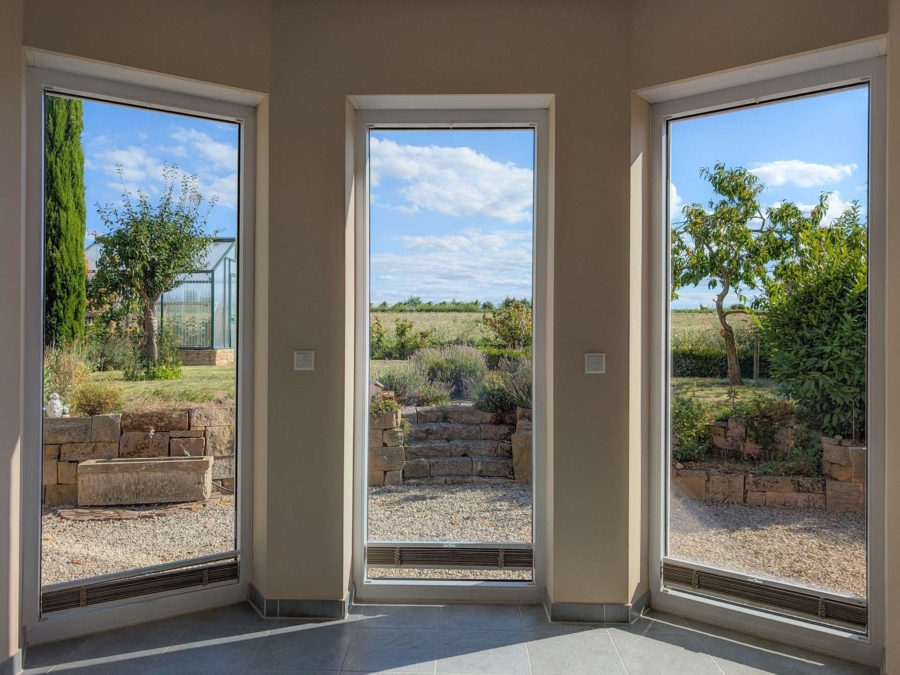 Das Herzstück bildet in den warmen Tagen wie diesen allerdings der schöne Garten mit toskanischem Flair! Fertig angelegt, mit Zypressen & Kräutern, einer Sandsteinmauer, einer Terrasse zum Grillen & Chillen und natürlich dem Blick in die Weiten machen das Wohnen in diesem Zuhause zu einem kleinen südländischen Traum.
