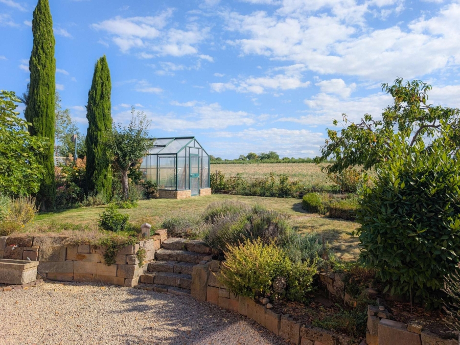 • nach Süden ausgerichteter Garten mit kleinem Gewächshaus