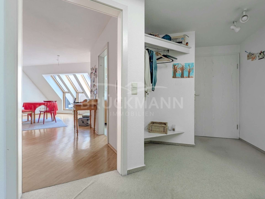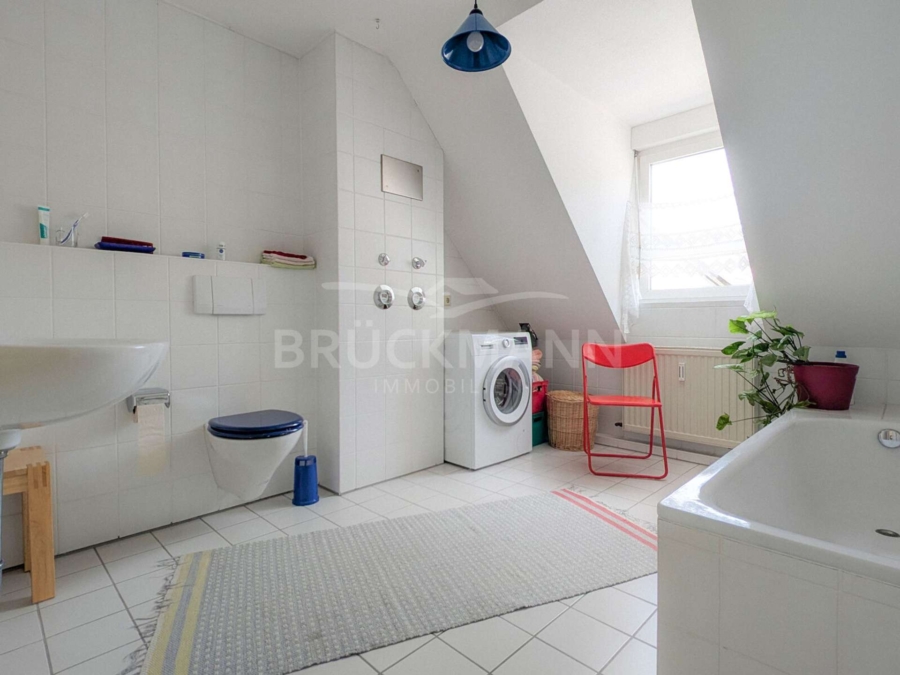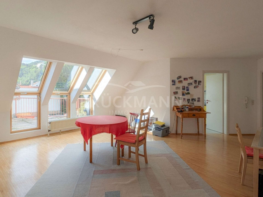 Die Wohnung überzeugt durch helle Räume, einen gepflegten, sofort bezugsfertigen Zustand und ein durchdachtes Potenzial: Das offene Studio im oberen Geschoss lässt sich bei Bedarf in ein bis zwei separate Räume unterteilen – ideal für ein zusätzliches Schlafzimmer oder Homeoffice. Trotz Dachschrägen bleibt die Raumwirkung großzügig und wohnlich.
