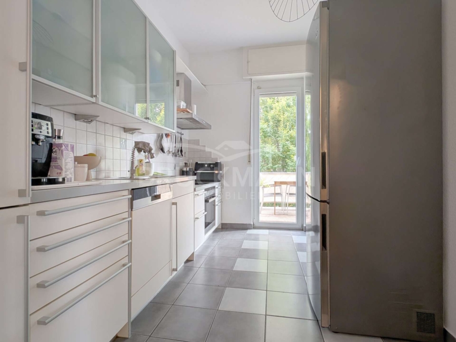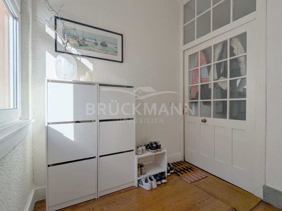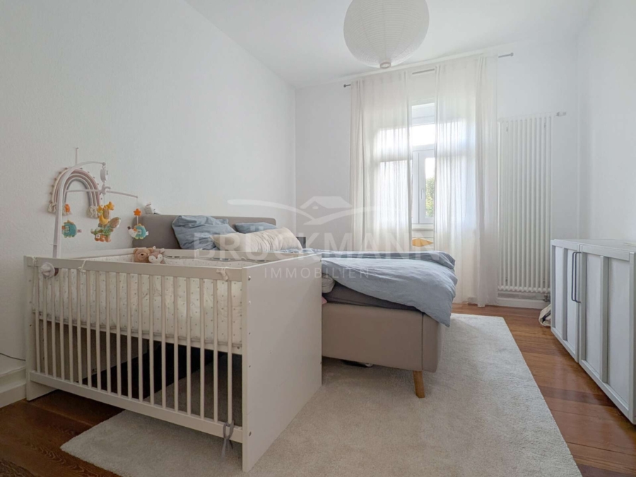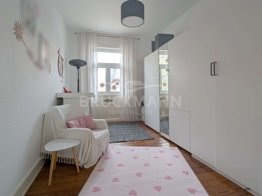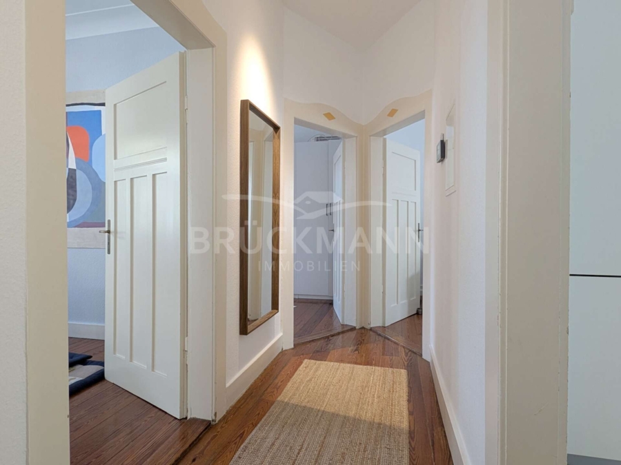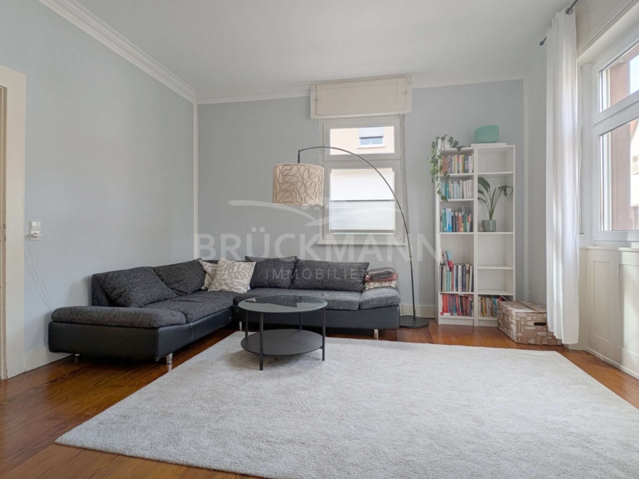 In dieser 4-Zimmer-Wohnung im 1. Obergeschoss eines Dreiparteienhauses erwartet die Bewohner auf rund 88 m² ein klar strukturierter, aber harmonischer Grundriss und historische Substanz. Besonders hervorzuheben sind die Raumhöhen, die baulichen Details dieser Bauzeit und die gut erhaltenen Pitch-Pine-Dielen, die eine warme Atmosphäre schaffen. Der nach Süden ausgerichtete Balkon mit Blick ins Grüne und der zur Wohnung gehörende Gartenanteil sind auch keine Selbstverständlichkeit in stadtnaher Lage... Eine weiße, zeitlose Einbauküche, ein funktionales Tageslicht-Bad, ein eigenes Kellerabteil und ein Carport ergänzen das Angebot.
