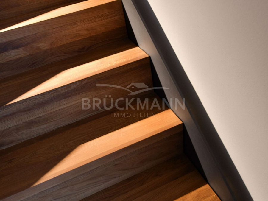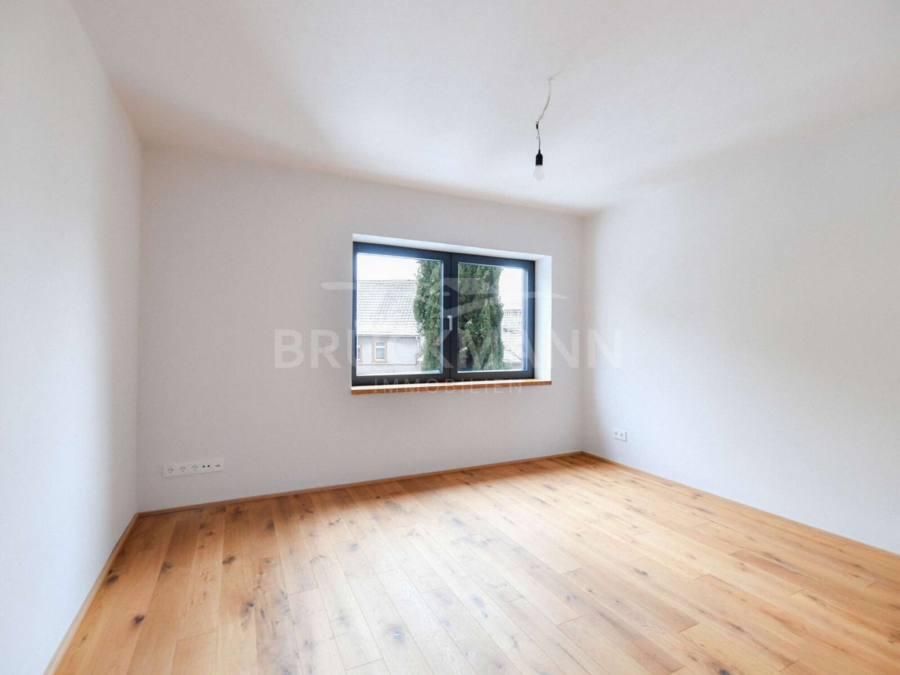Die Wohnung erstreckt sich als Maisonette über mehrere Ebenen und wird über das Erdgeschoss erschlossen. Bereits beim Betreten zeigt sich ein klares Raumkonzept, das Funktion und Rückzug trennt. Im ersten Obergeschoss befinden sich zwei gut proportionierte Zimmer, die sich flexibel als Schlaf-, Arbeits- oder Kinderzimmer nutzen lassen. Ergänzt werden sie durch einen zentralen Flur, eine separate Garderobe und ein großzügiges Tageslichtbad. Diese Ebene wirkt ruhig, strukturiert und bewusst zurückgenommen.