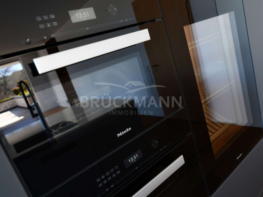 Vom Aufzug aus betreten Sie die zentral gelegene Diele, die alle Bereiche strukturiert erschließt. Direkt gegenüber öffnet sich der offene, großzügige Wohn-, Koch- und Essbereich mit rund 59 m², der durch gigantische Fensterflächen, beeindruckende Deckenhöhen und den Zugang zur großen, nach Westen ausgerichteten Dachterrasse geprägt ist. Zeitlos edle Oberflächen unterstreichen den hochwertigen Charakter und schaffen eine ruhige, elegante Wohnatmosphäre. Hier entsteht ein fließender Übergang zwischen Innenraum und Außenfläche, ideal für lange Abende – privat oder mit Gästen – mit Blick Richtung Pfälzerwald. Die Küche ist offen integriert, hochwertig(st) ausgestattet und wird durch eine separate Speisekammer sinnvoll ergänzt.